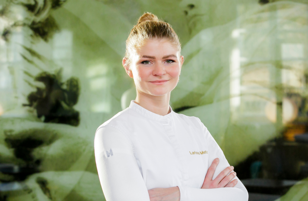 Larissa Metz, Pâtissière im Restaurant Vendôme (fünf Hauben rot) und unsere Pâtissière des Jahres 2022, verrät, wie sie die Abschnitte und Schalen von Äpfeln dazu benutzt, einen leckeren Sirup aus ihnen herzustellen. >>