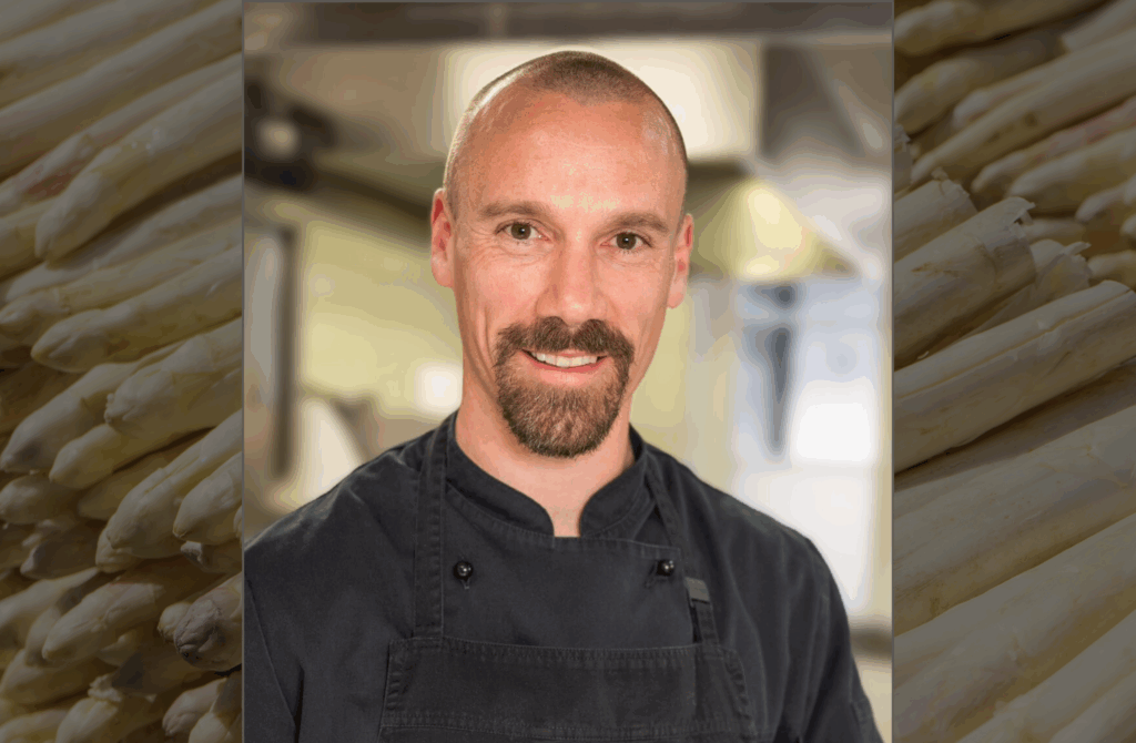 Simon Nauels vom Weinhaus Tante Anna in Düsseldorf (eine Haube schwarz) verrät seine Tricks für einen intensiveren Spargelgenuss. >>
