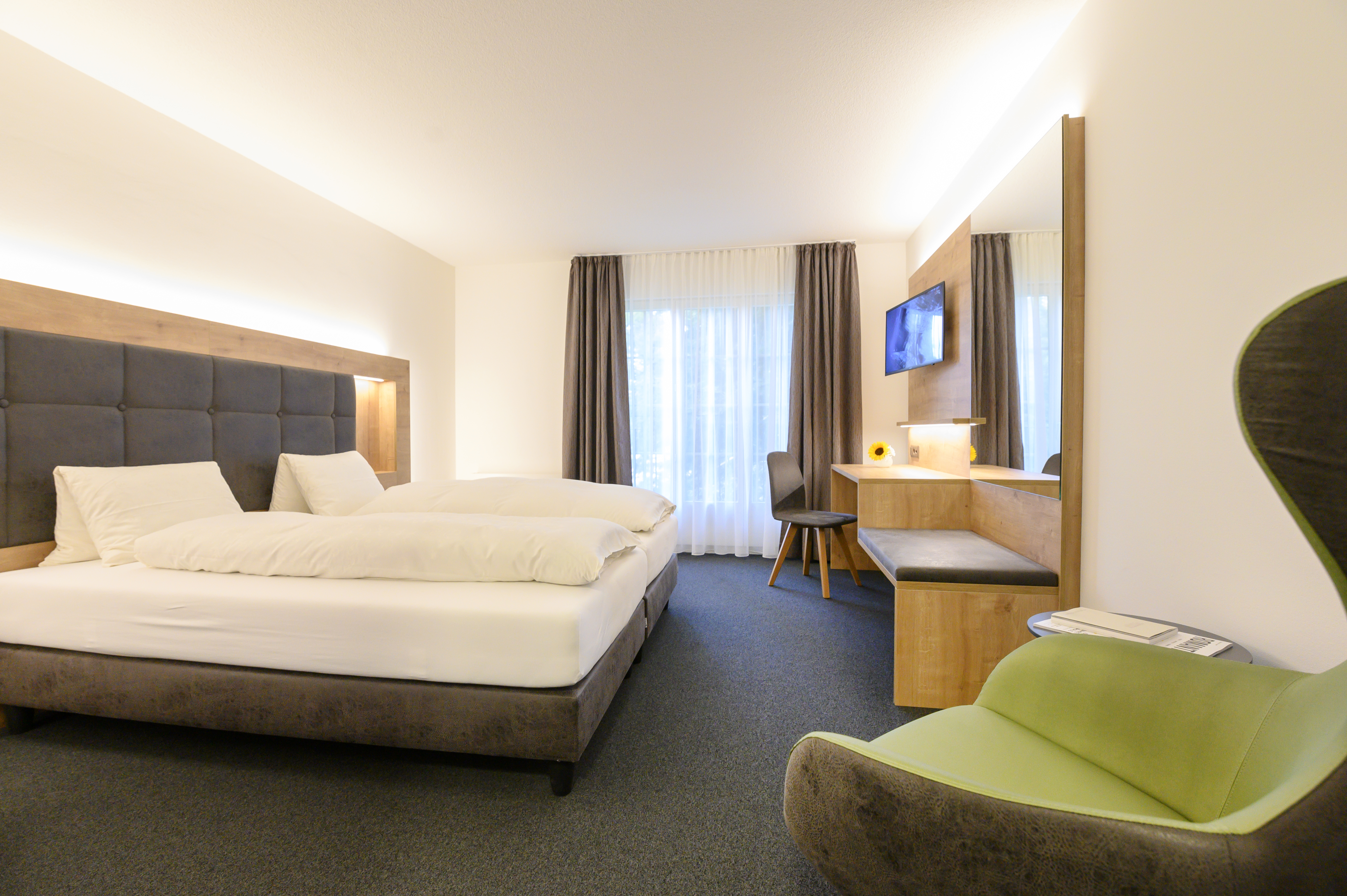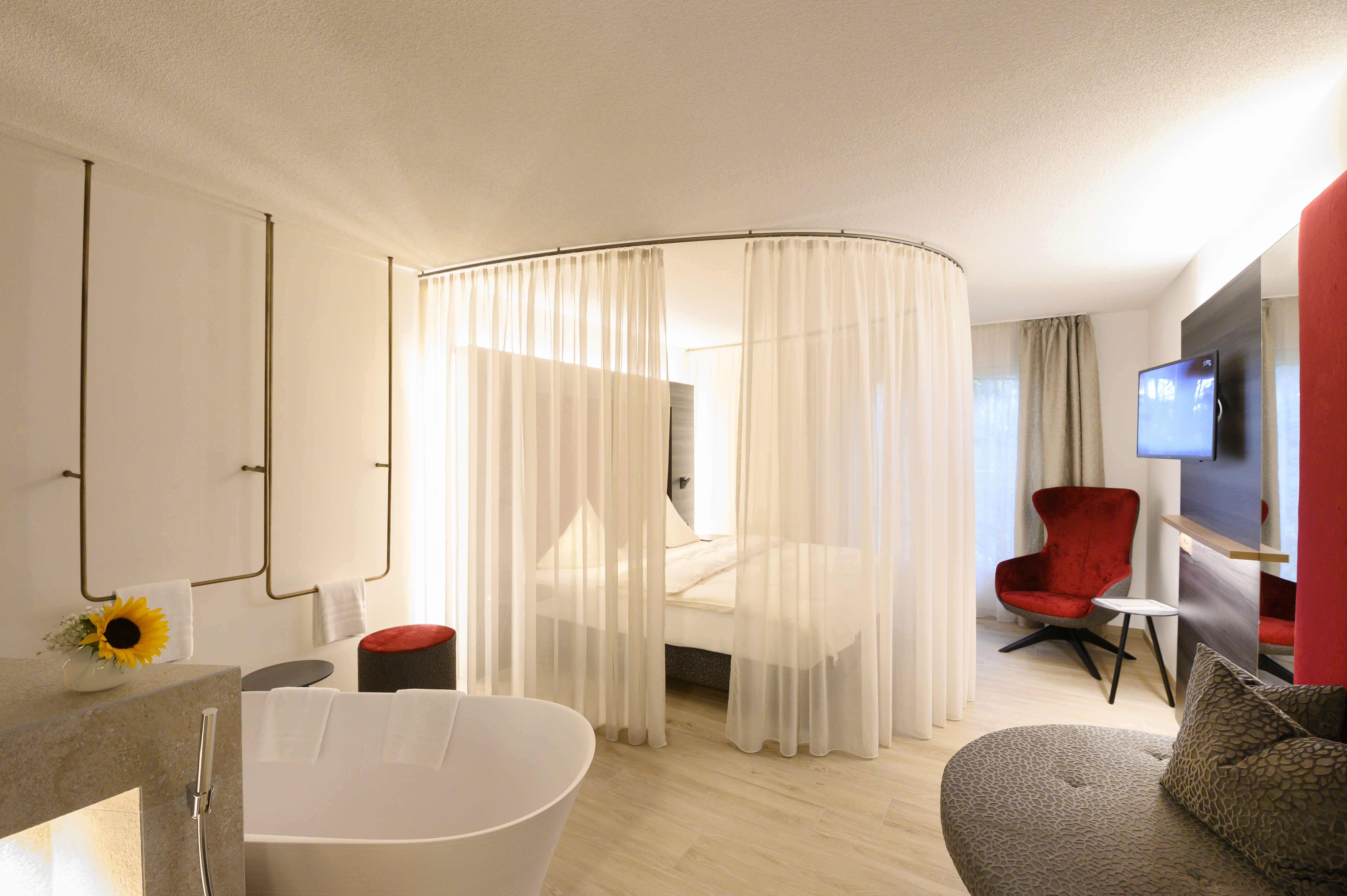 Das Romantik Hotel Sternen in Kriegstetten begeistert Genussmenschen mit zwei charmanten Restaurants: dem eleganten Gartenzimmer und dem rustikalen Dorfbeizli. Im Gartenzimmer kombiniert Küchenchef Pierre Kaufeis klassische Schweizer Küche mit modernen, saisonalen Kreationen – stets mit regionalen Produkten und viel Kreativität zubereitet. Das Dorfbeizli lädt an über 150 Jahre alten Holztischen zu hausgemachten Spezialitäten wie Burgern, Schnitzeln und wechselnden saisonalen Gerichten ein Im Sommer kann man im lauschigen Sternengarten unter alten Linden ein Glas Wein oder köstliche Speisen genießen, während der Springbrunnen plätschert. Besonders stolz ist das Hotel auf seinen Weinkeller mit Schweizer Crus wie Gamaret oder Blauburgunder, aber auch feinen Tropfen aus Frankreich, Italien, Spanien und Österreich – sogar edle Château Mouton-Rothschild-Spezialitäten. Vegetarische und vegane Gäste sowie Allergiker werden bestens betreut, da viele Gerichte spontan und frisch angepasst werden können. Insgesamt verspricht das kulinarische Angebot im Sternen eine geschmackvolle Symbiose aus regionaler Tradition, saisonaler Vielfalt und hochwertiger, kreativer Kochkunst.