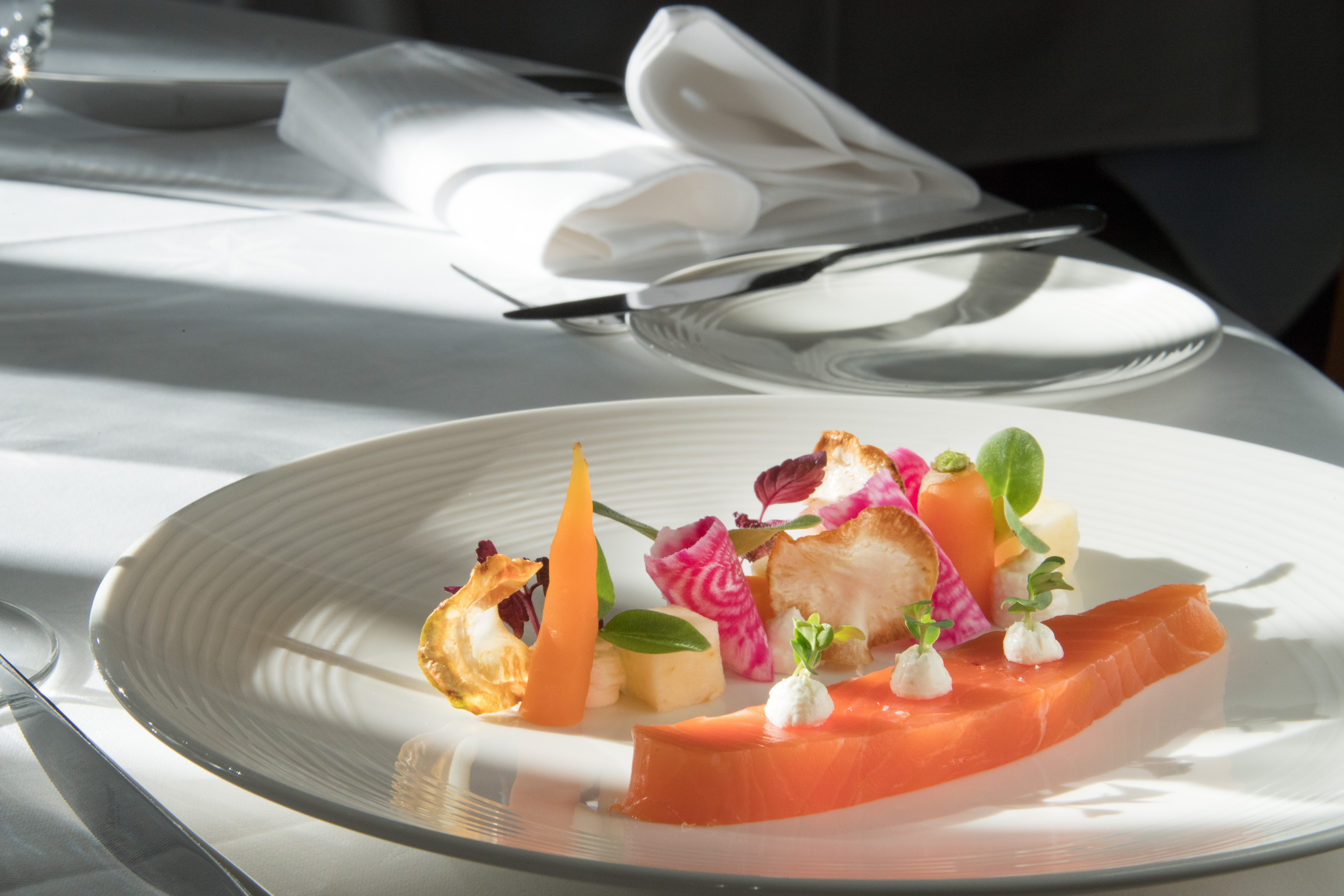 Im „Gartenzimmer“ des Romantik Hotel Sternen in Kriegstetten trifft französisch geprägte Klassik auf moderne Leichtigkeit – mit saisonalen Zutaten, fein komponiert und ha...