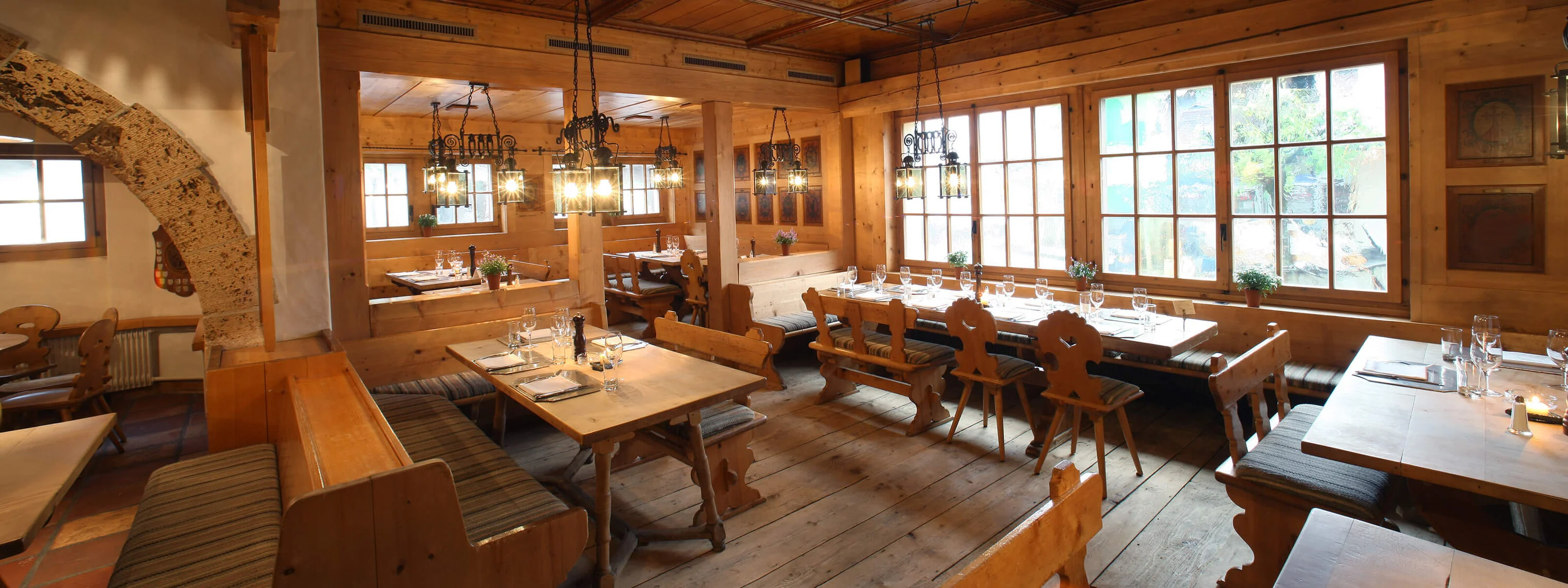 Das rustikale Restaurant La Gare im Bernerhof bietet klassische Schweizer Küche wie Raclette und Fondue. Die Zutaten stammen fast ausschließlich aus der Region und von persönlich bekannten Produzenten.
