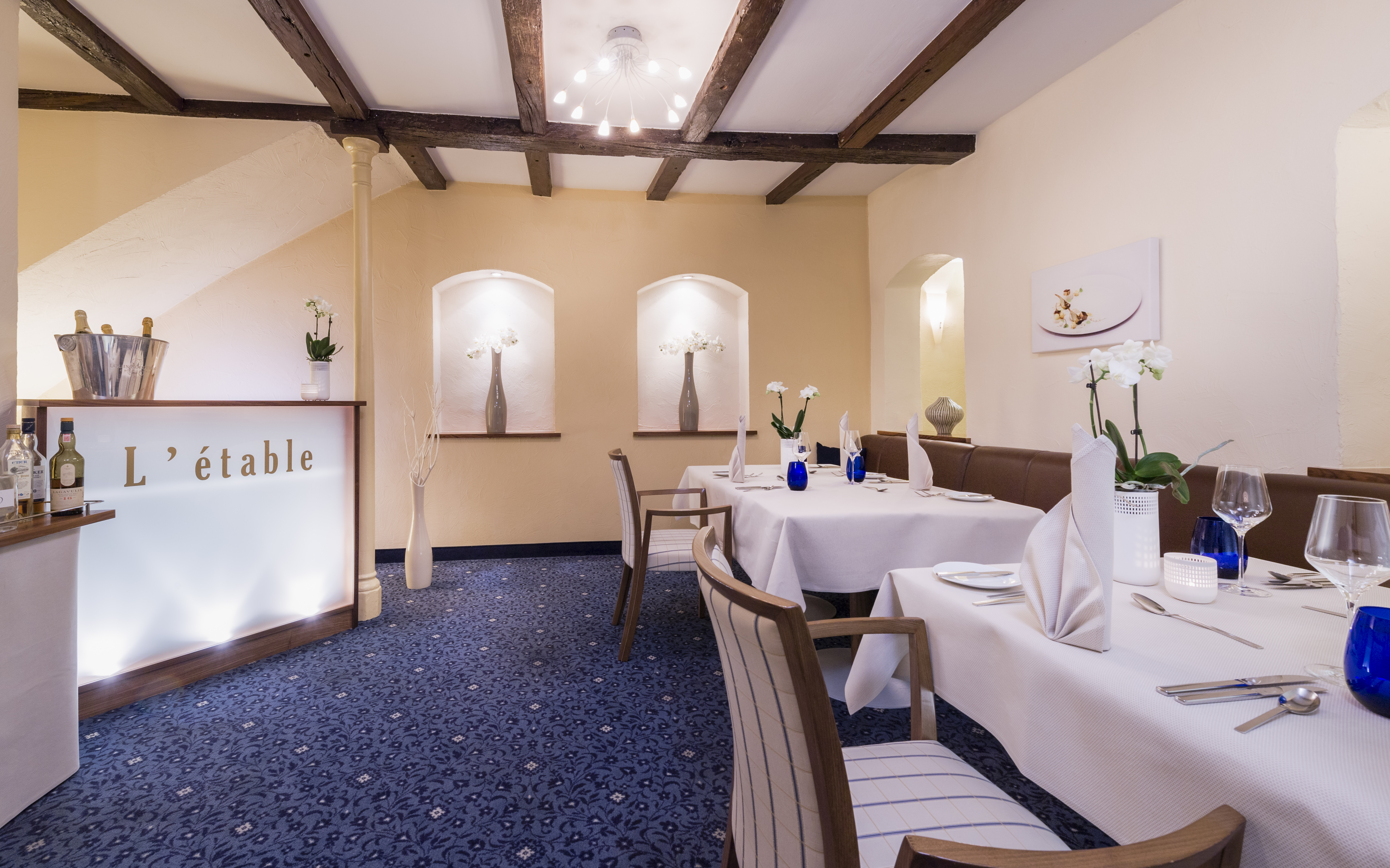 Im Restaurant L’Étable genießen Gäste im Hotel „Zum Stern“ ausgezeichnete Küche in ruhiger, gemütlicher Atmosphäre – abseits des Trubels und mit einem Hauch von Tradition und Modernität.