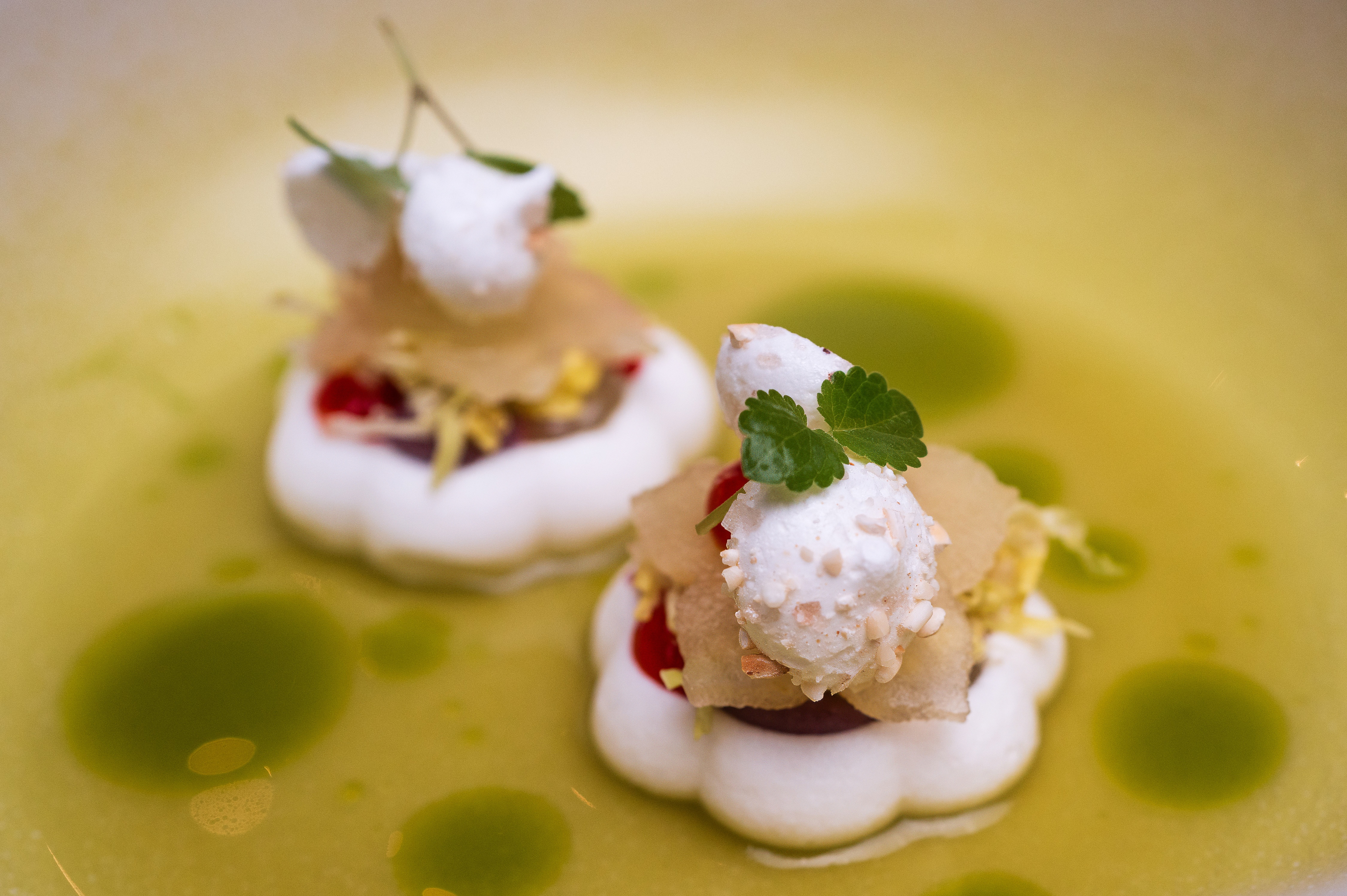 Einen Teller von Tim Raue würde man unter Hunderten erkennen. In seinem smarten Kreuzberger Restaurant serviert er neben einem asiatisch inspirierten und einem veganen Menü auch ein von Berlin inspiriertes. Wie immer: beste kulinarische Unterhaltung.