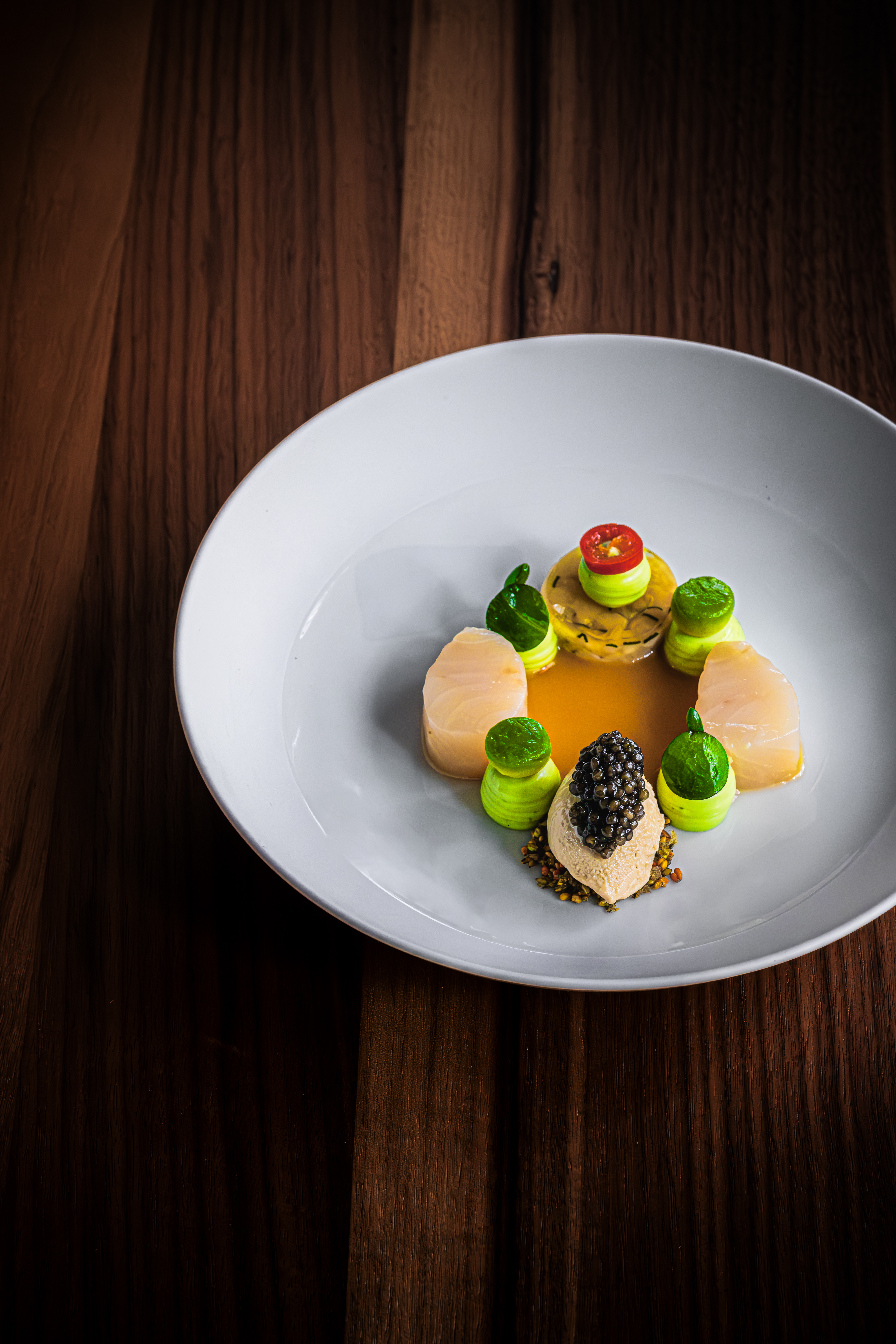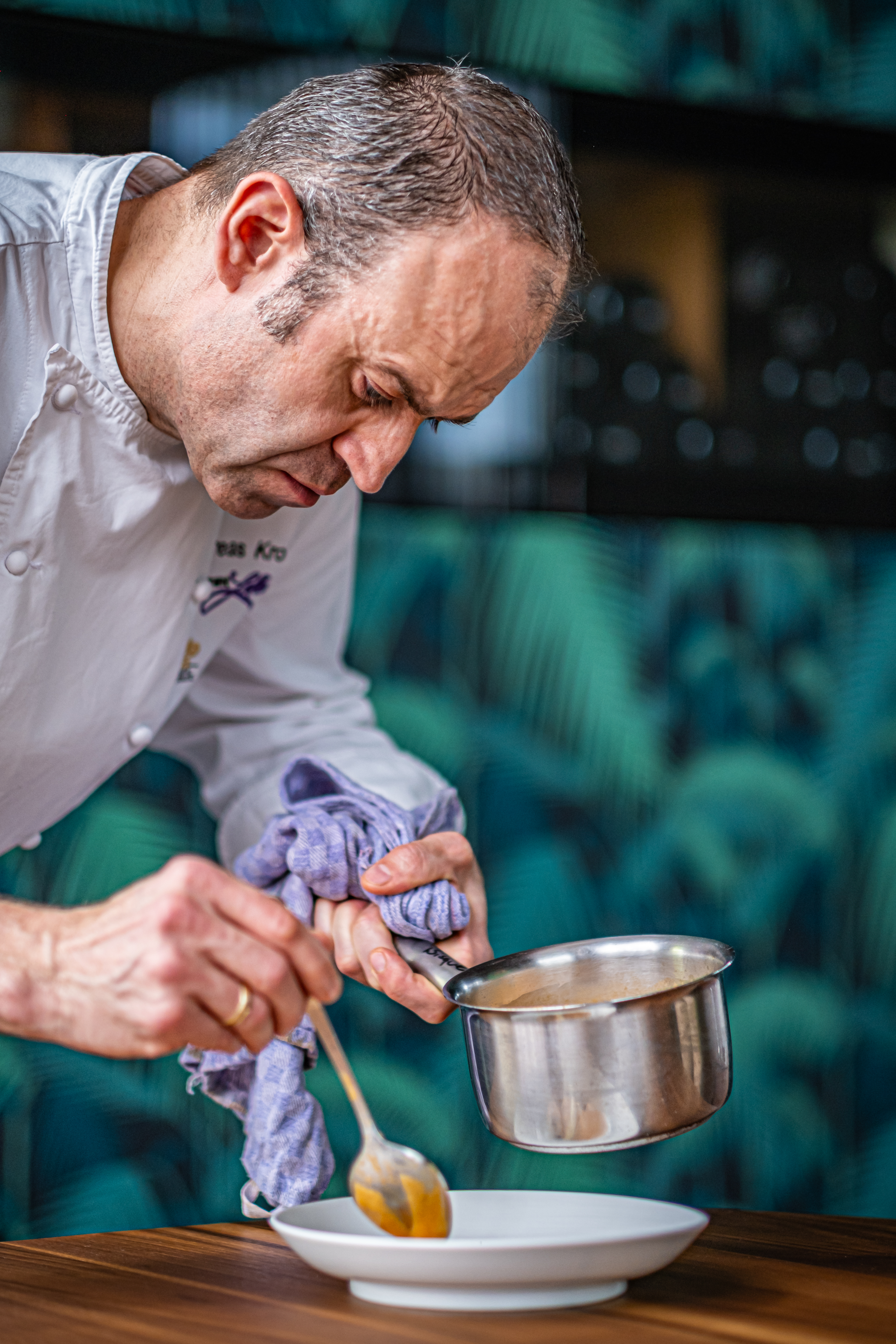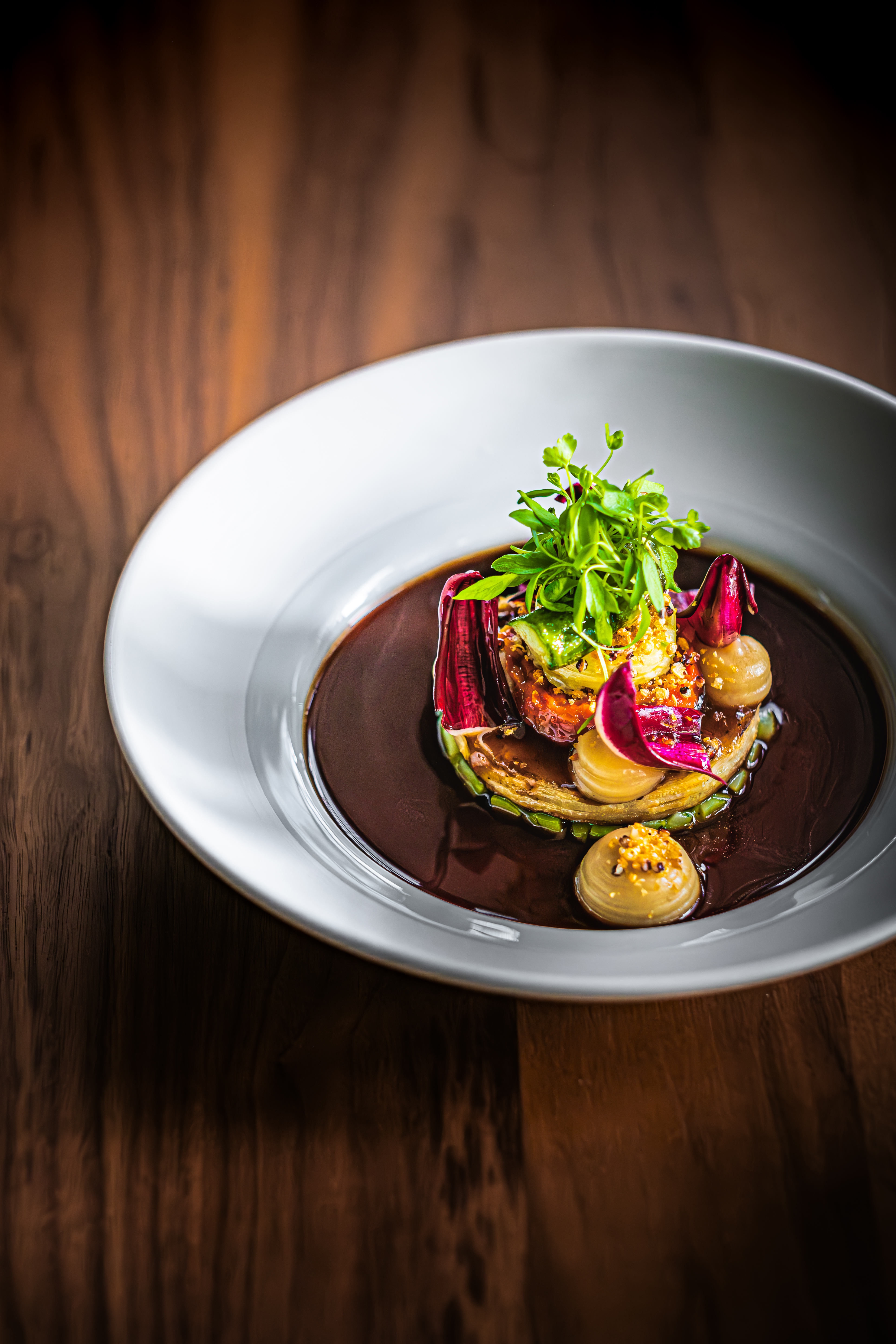 Andreas Kolik ist nicht nur bekannt für seine aromastarke vegane Gourmetküche. Im schicken Restaurant kommen auch französisch grundierte Gerichte in Topqualität auf die Teller.