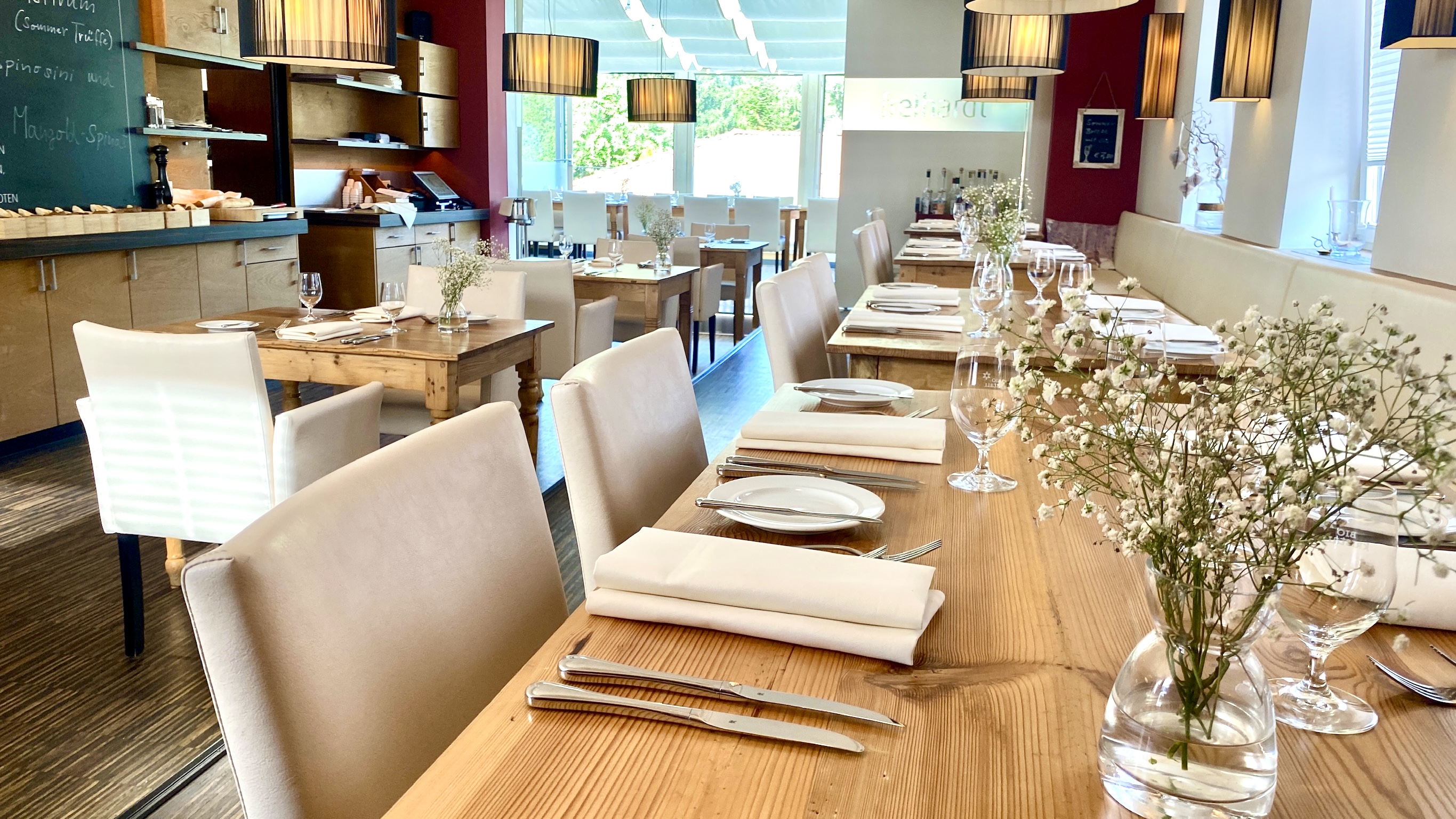 Im Ortskern befindet sich ein charmantes Restaurant mit Bar und eigener Metzgerei. Hier wird international und saisonal gekocht, wobei besonders Fleischgerichte im Mittelpunkt stehen. Die Atmosphäre ist entspannt und freundlich.