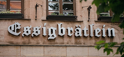 Das hinter Butzenscheiben verborgene Essigbrätlein hat unter bewährter Küchenregie von Yves Ollech & Andree Köthe über die Jahrzehnte zu einer ganz eigenständigen, herausragenden Gemüseküche gefunden, die in Deutschland als einzigartig bezeichnet werden darf. Opulente Weinkarte, guter Service.