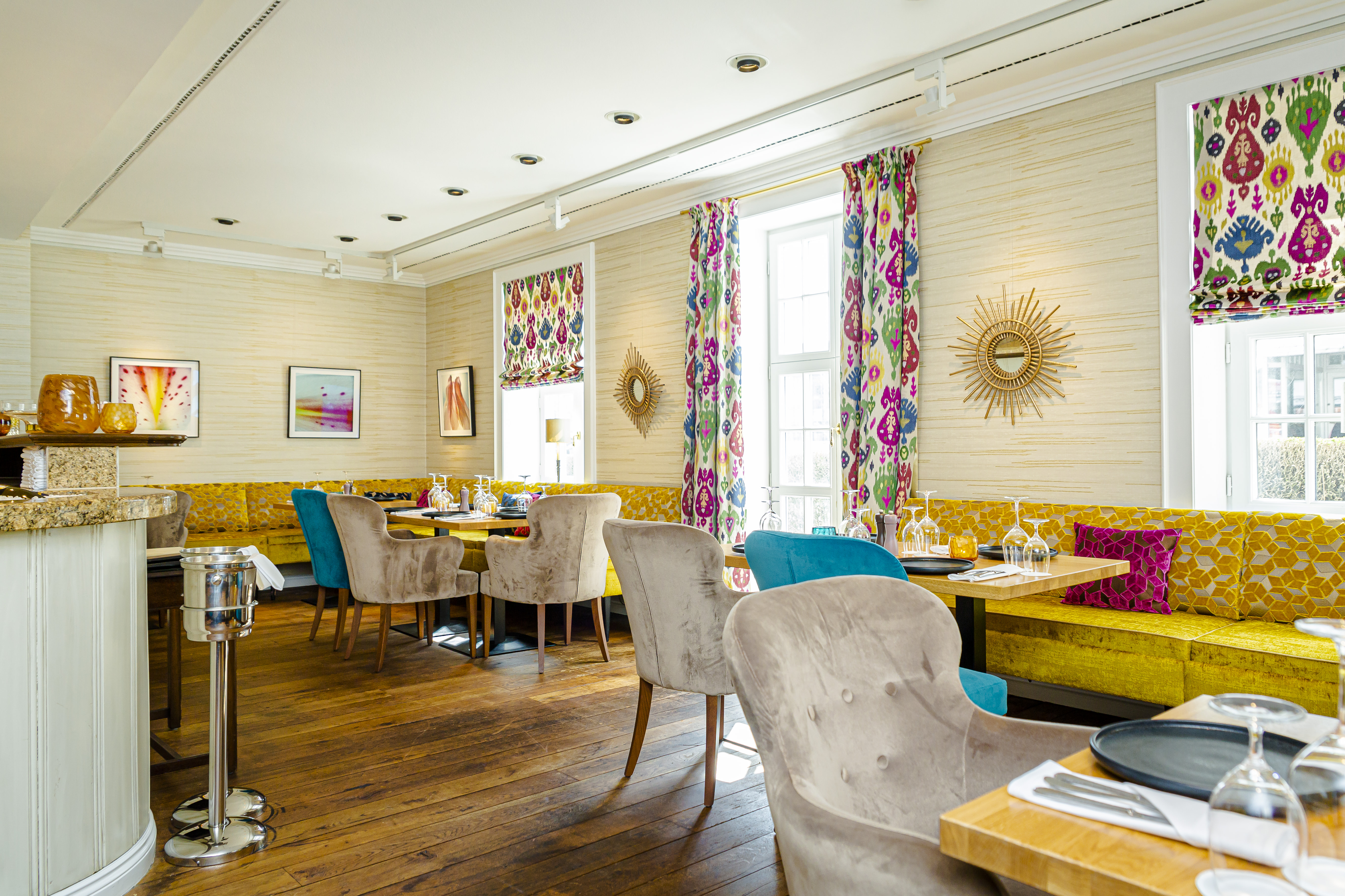 Das Westerländer Hotel-Bistro bietet einen schönen Blick, eine sonnige Terrasse und ein farbenfrohes Ambiente im Innenbereich – perfekt zum Genießen und Beobachten des Treibens auf der Strandstraße.