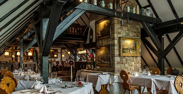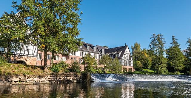 Die zu einem wunderschönen Fachwerk-Ensemble erweiterte ehemalige Mühle an der fränkischen Saale ist eine Augenweide. Das Restaurant residiert im verglasten Giebel des Haupthauses und bietet neben rustikal-eleganter Atmosphäre den Blick auf die Flusslandschaft. In dieser idyllischen Umgebung lässt sich eine Küche, die regionale Zutaten mit internationalen Einflüssen verbindet, genießen. Dazu passt eine abgestimmte Weinbegleitung oder die Wahl aus der umfangreichen Weinkarte.