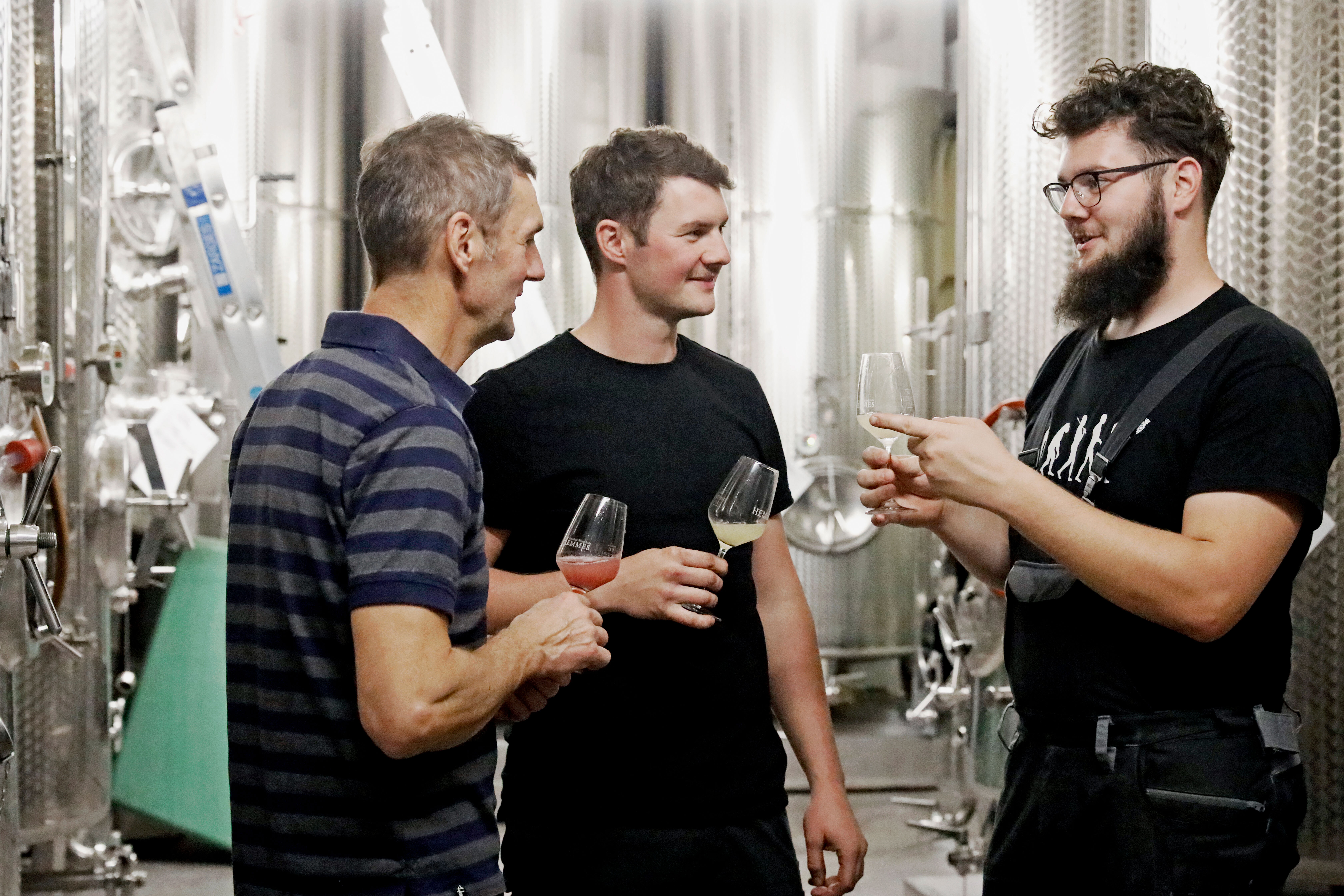 In der alten Dorfschule von Bingen-Kempten hat die Familie Hemmes ein Stück Geschichte neu belebt: Wo früher Kinder die Schulbank drückten, finden heute Weinproben und -seminare statt. Frank und Sohn Felix bilden das Herz des Betriebs, und auch Bruder Philipp bringt neue Impulse ein. Auf 20 Hektar entstehen klassische Weine vom spritzigen Guts- bis zum herkunftsorientierten Lagenwein. Und auch in Sachen Süßwein haben die Hemmes-Jungs einiges auf dem Kasten, wie uns ihre 2021er Beerenauslese aus dem Binger Scharlachberg eindrucksvoll bewiesen hat.