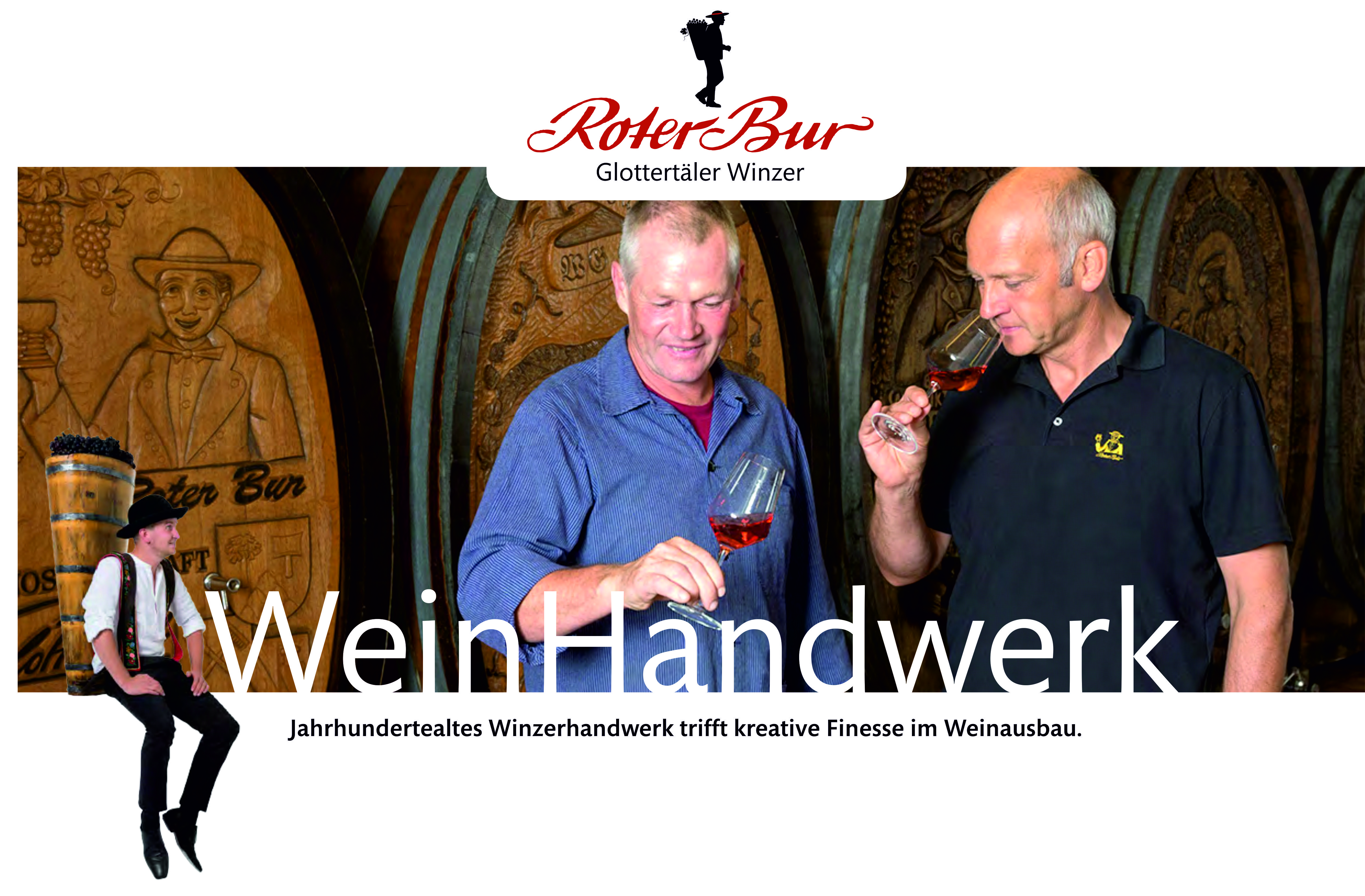 Das Team der rund 100 Glottertäler Winzer lässt sich nicht aus der Ruhe bringen. Trotz Klimawandel, Steillagen mit bis zu 70 Grad und sinkendem Weinkonsum sind Kellermeister Norbert Faller und Betriebsleiter Udo Opel bester Dinge. Der einzigartige Lagenschatz mit Eichberg und Rotem Bur hält das Herz der kleinen, aber ungemein umtriebigen Genossenschaft unaufhörlich am Schlagen. Und damit das auch noch lange so bleibt, sorgt die genossenschaftsinterne Jungwinzervereinigung mit viel Engagement, eigenen Weinen und Events für immer wieder neuen Schwung.