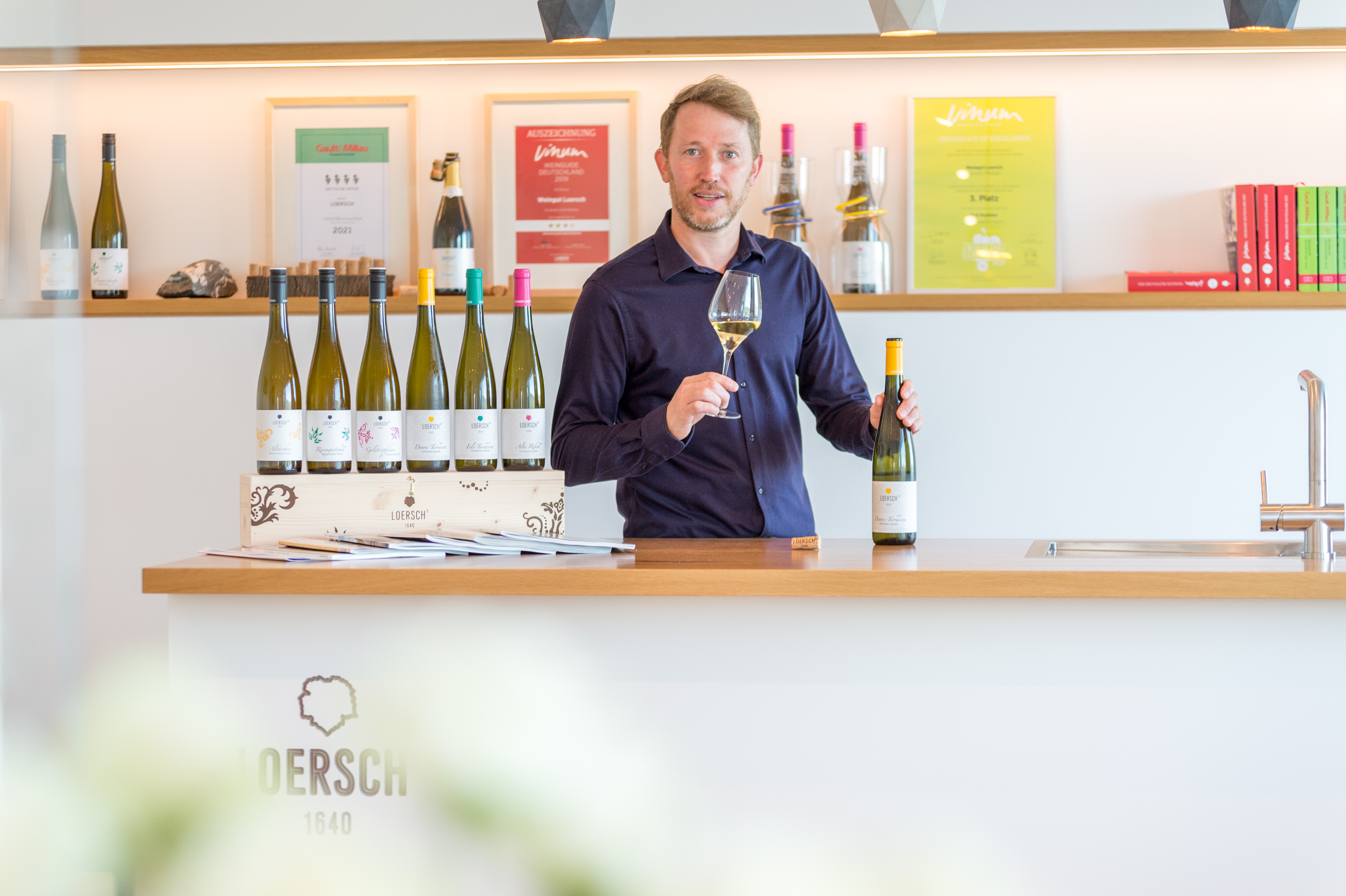 Alexander Loersch hat mit seinen Weinen schon mehrere nationale Preise eingeheimst. Der ambitionierte Winzer, der seit rund 20 Jahren den Familienbetrieb führt, hat ein sicheres Händchen für terroirbetonte, lagentypische Rieslinge. Die Trauben dafür wachsen in steilen, schwer zugänglichen Schieferhängen hoch über der Mosel, die noch vorwiegend mit der Hand bearbeitet werden. Gäste von Alexander Loersch können diese einzigartige Weinlandschaft von der Panorama-Terrasse der Skylounge aus bewundern. Immer natürlich mit einem Riesling im Glas.
