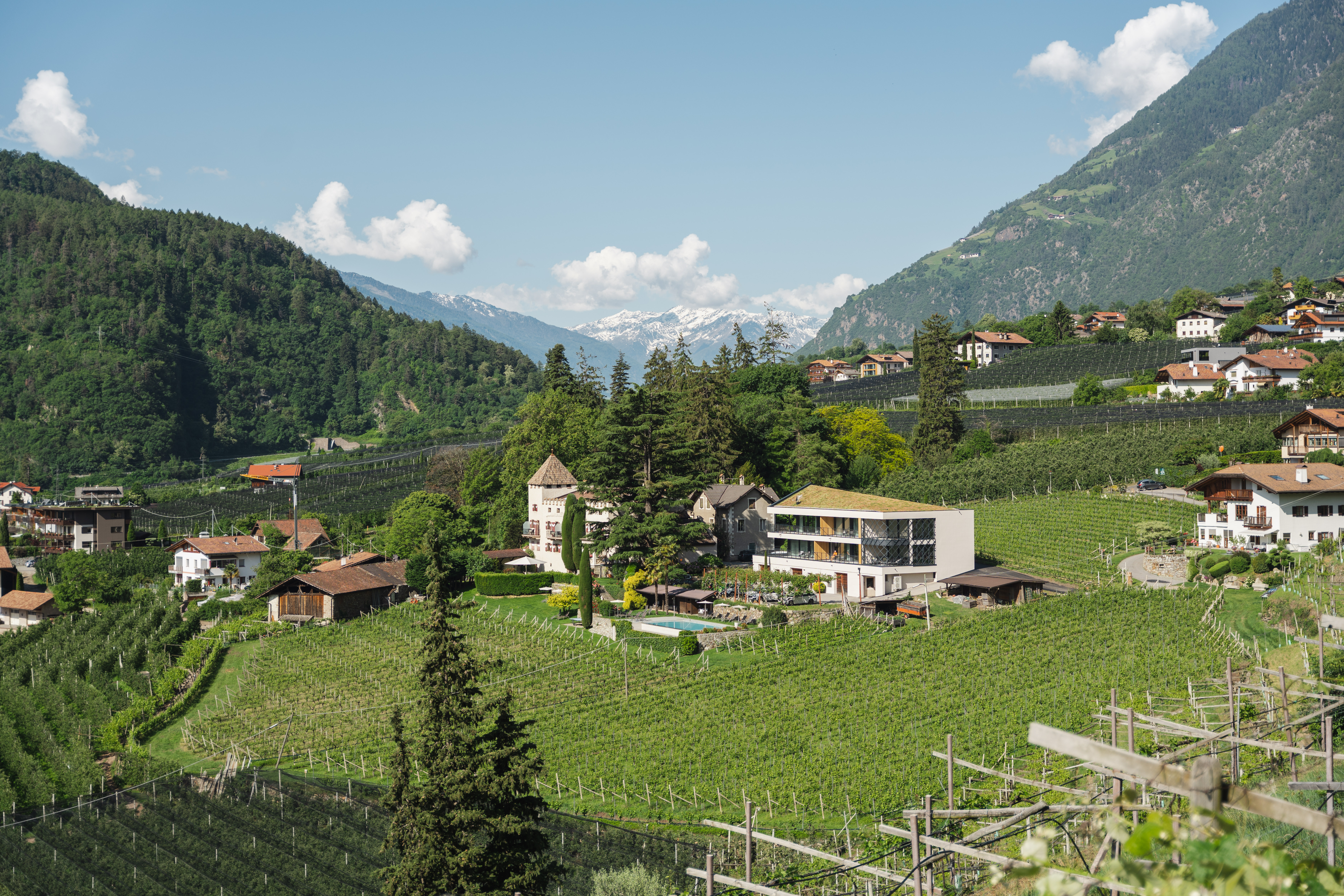 Vor zwanzig Jahren übernahm Andreas Theiner die Geschicke des Schloss Plars (gesprochen „Plarsch“). Ein Sprung in ein neues Leben, zuvor hatte er als Banker Karriere gemacht. Seither widmet er sich mit Leidenschaft und Akribie den Rebstöcken, die auf zwei Hektar rund um das Boutique-Hotel im alten Gutshof stehen, das von seiner Frau geführt wird. Bis auf Vernatsch und Muskateller kommen alle Weine mit Holz in Berührung, sei es durch Reife im großen Akazienholzfass oder durch den teilweisen Ausbau im Barrique.